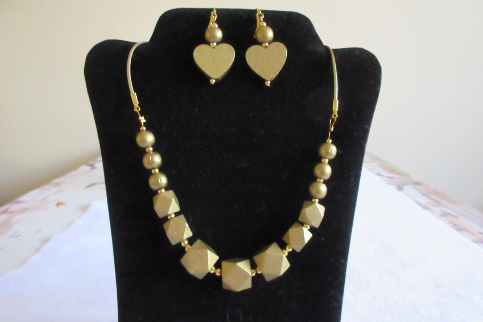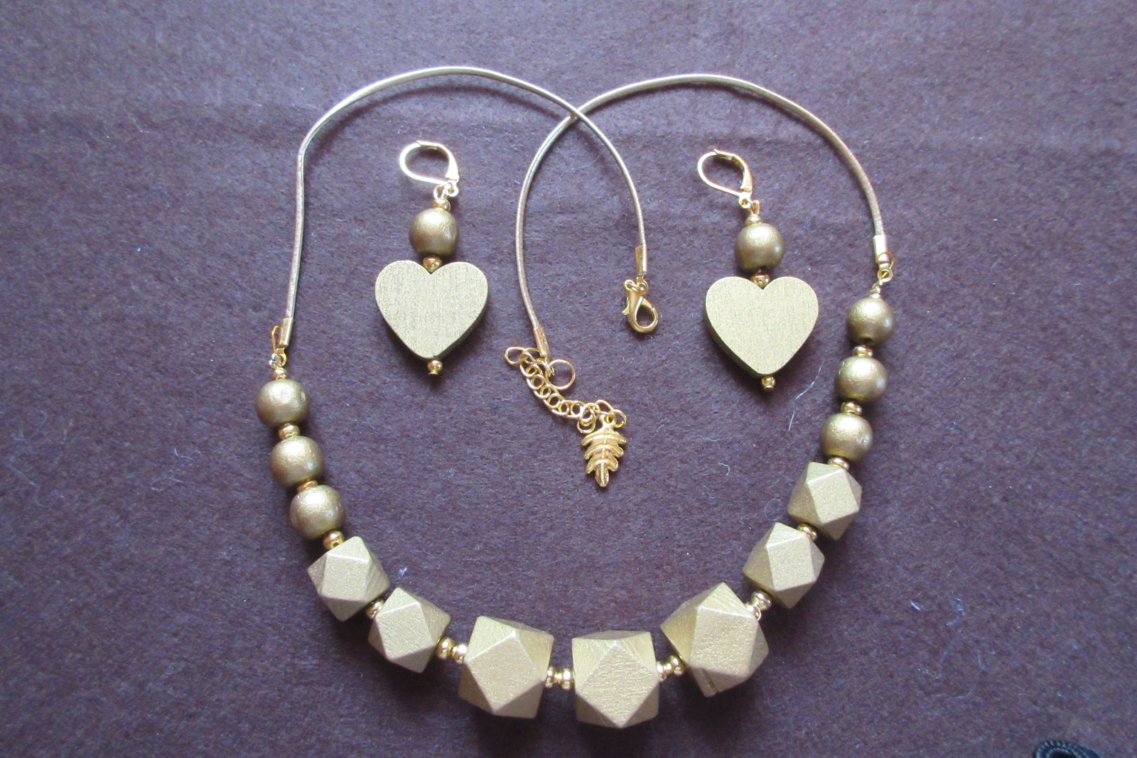 Další z odlehčených náhrdelníků, který jsem vytvořila z dřevěných tvarů ve zlaté barvě, oddělených distančními kovovými kuličkami - rovněž v barvě zlata, šňůrka je z eko kůže - také ve zlaté barvě, veškeré komponenty jsou rovněž v této barvě. Délka - 56 - 61,5 cm.
