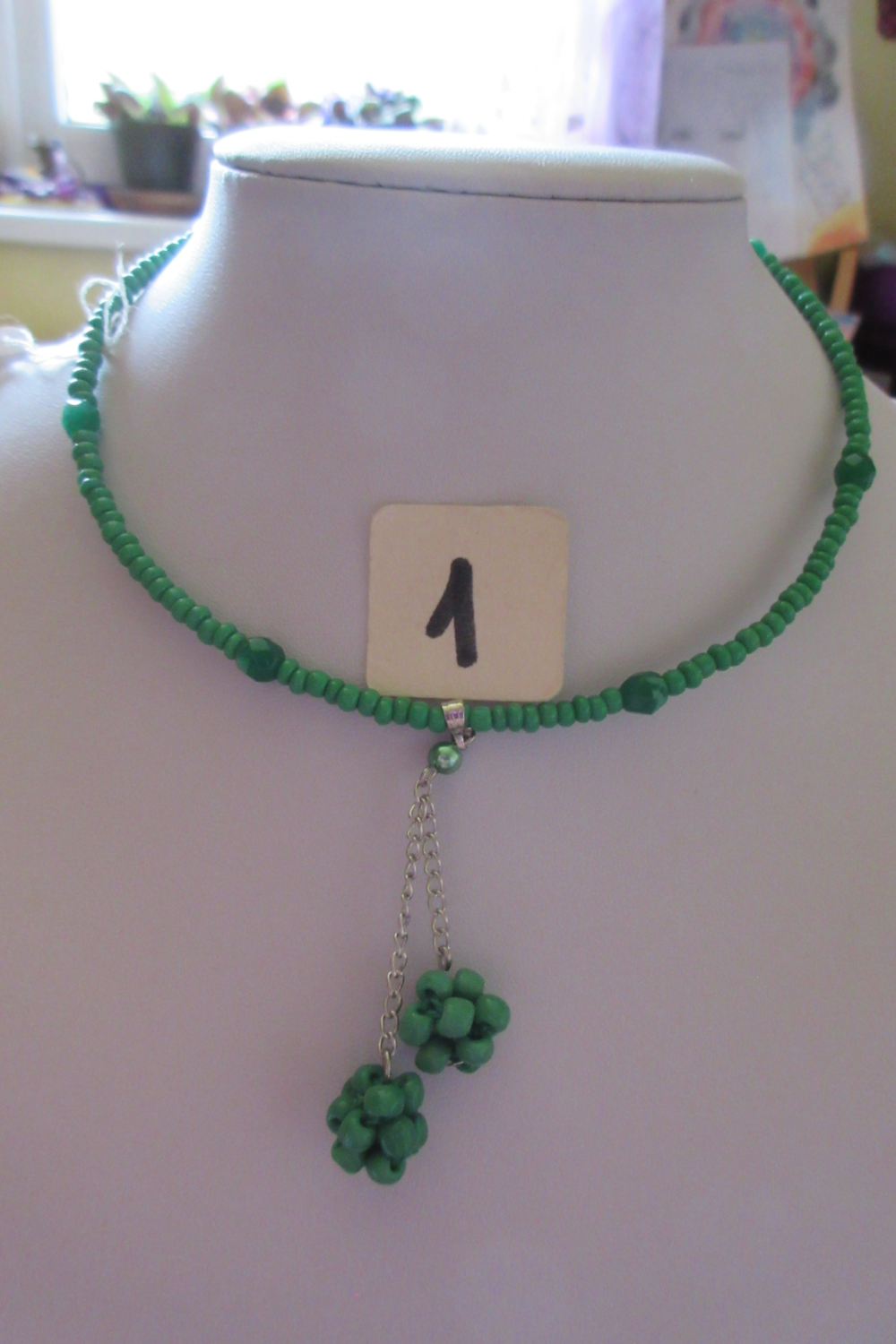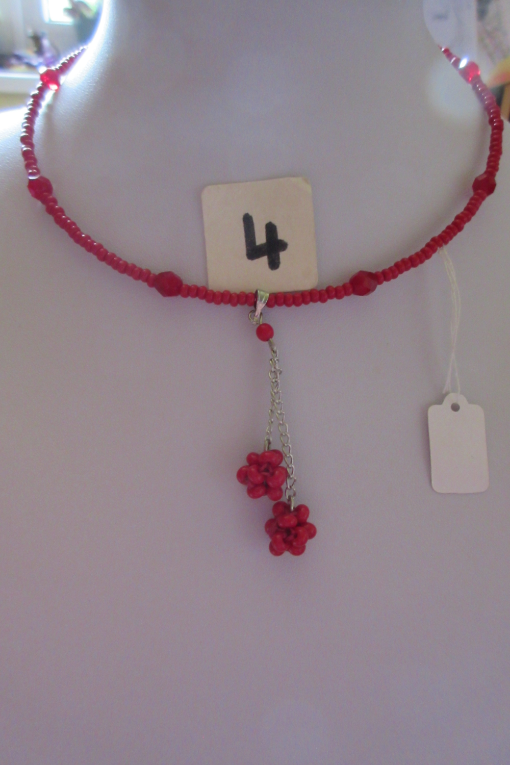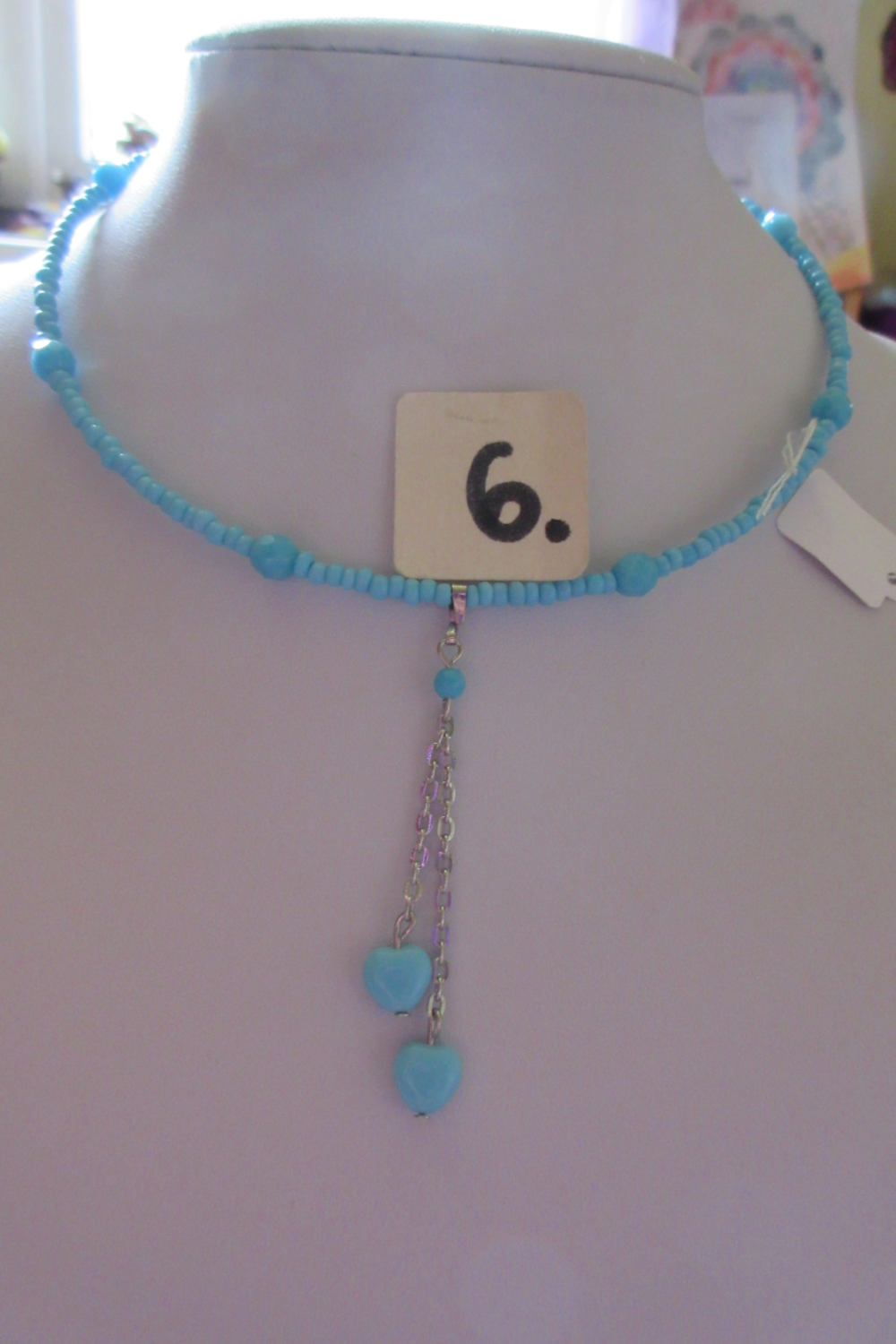 Jednoduchý a přitom velmi efektní náhrdelník, navlečený na paměťovém drátu, takže se krásně přizpůsobí velikosti krku. Použila jsem skleněný rokajl vel. 3 mm, dále skleněné kuličky vel. 5 mm, jako přívěsek jsou šité kuličky rovněž z rokajlu, navlečené na řetízku, dále jsem použila jako přívěsky srdíčka ze skla, jejich velikost je buď 15/15 nebo 10/10 mm. Náhrdelník nemá zapínání, takže jeho navlečení na krk je rychlé a snadné.